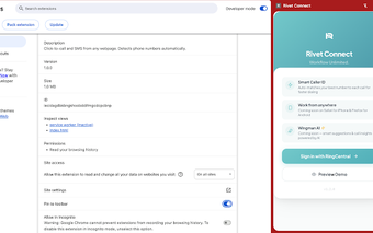 Расширение специально разработано для сотрудников Rivet, которые используют управляемые компанией аккаунты RingCentral, что обеспечивает безопасность и эффективность коммуникаций. Благодаря бесшовной интеграции в браузер Chrome, Rivet Flow предлагает простое решение для бизнеса, стремящегося оптимизировать свои внутренние каналы связи.